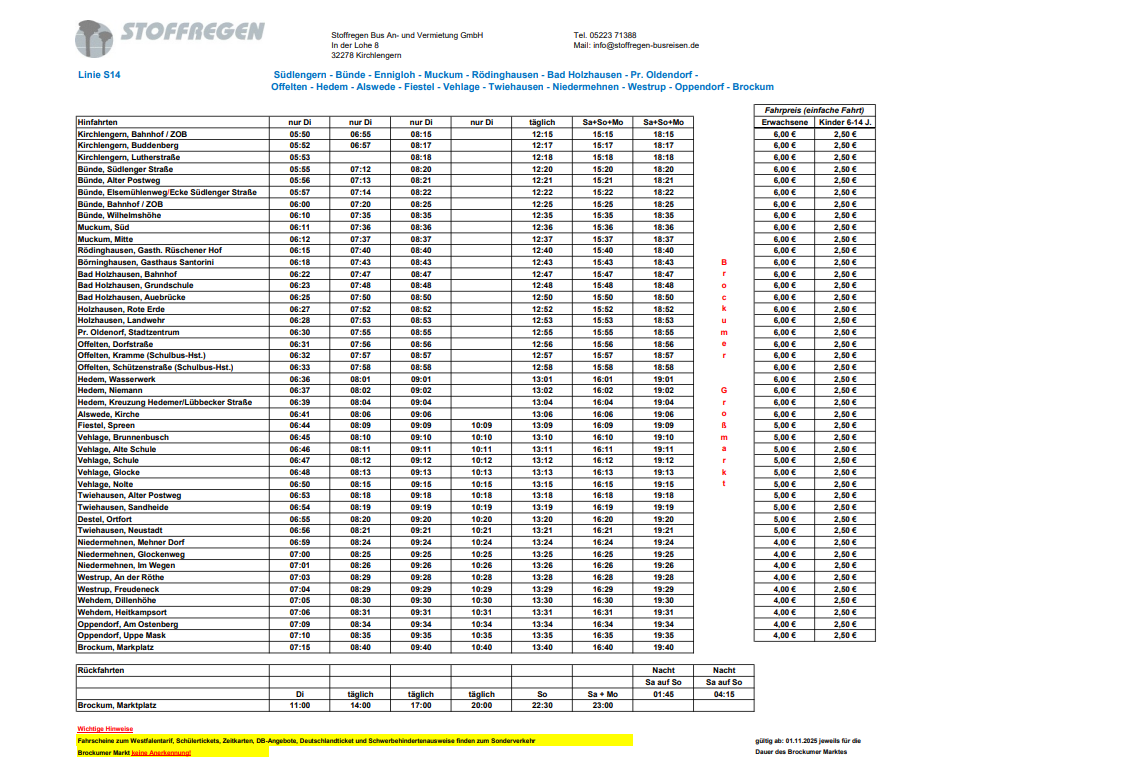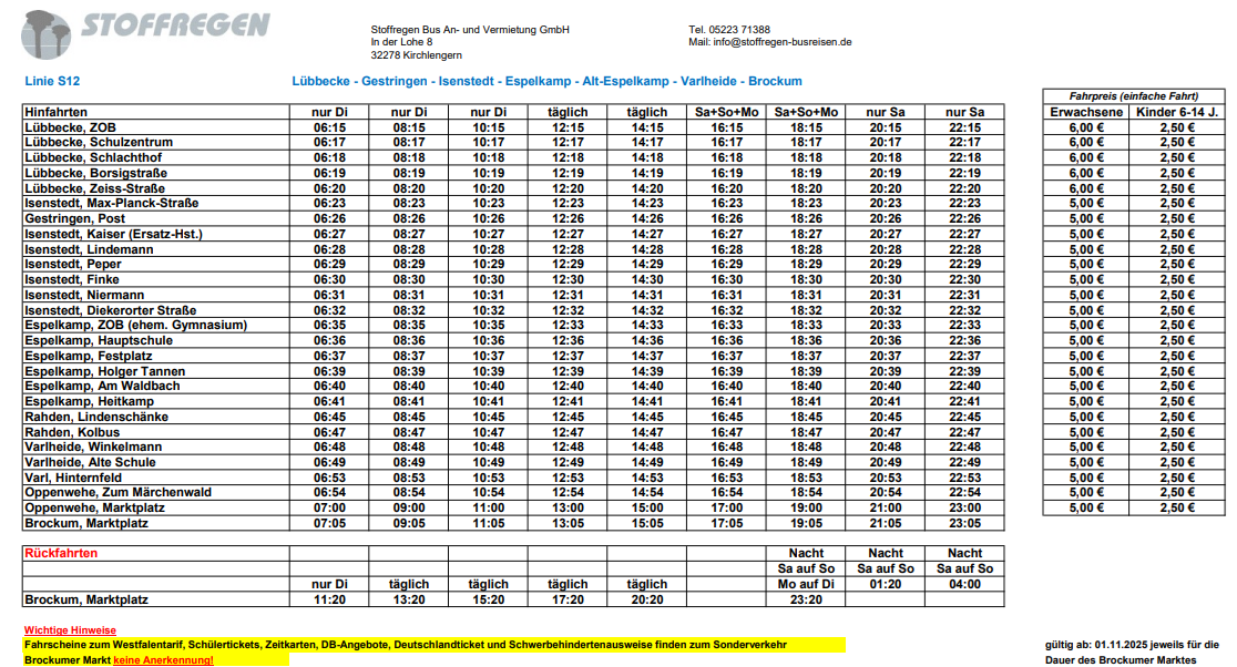 In diesem Jahr werden allerdings keine Busfahrpläne ausliegen. Ihr findet sie auf unserer Homepage und hier auf unserer Facebook Seite! Weitere Informationen findet Ihr auch unter der offiziellen Internetseite des Brockumer Markt.
